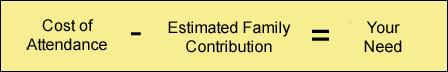 Sound simple? Well, it is and it isn't. Financial Aid officers prefer using other terminology to express the same meaning. Here is exactly the same equation written using financial aid jargon: